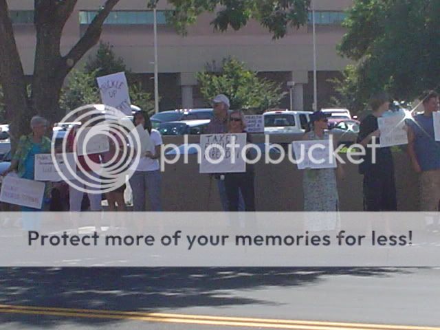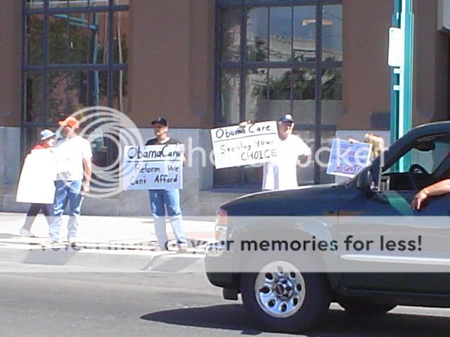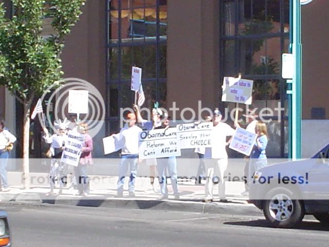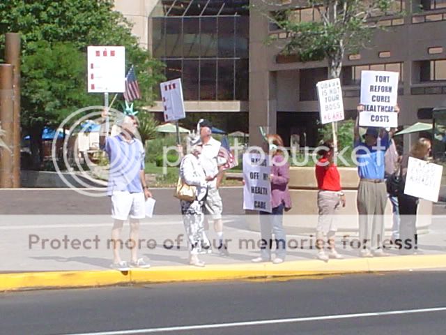 Yesterday morning (Friday, 17 July 2009) I went to the local Tea Party demonstration. Short summary — the petitions were presented to Sen. Udall’s staff, they said that he was going to vote for The Barack‘s “cap and trade” bill and Obamacare regardless of what his constituents tell him. Then the assembled protestors were told to disperse by Albuquerque Police Department for not having a permit.
