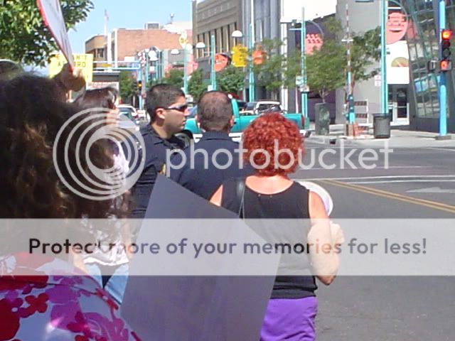 - Today (Friday 17 July) I went to the Albuquerque Tea Party (separate blog entry to follow shortly). The event started on 2nd St between Copper and Tijeras, then moved to Central Ave between 2nd and 3rd Streets. At around 11 AM, the 100 or so people there were told to disperse by APD for not having a permit.